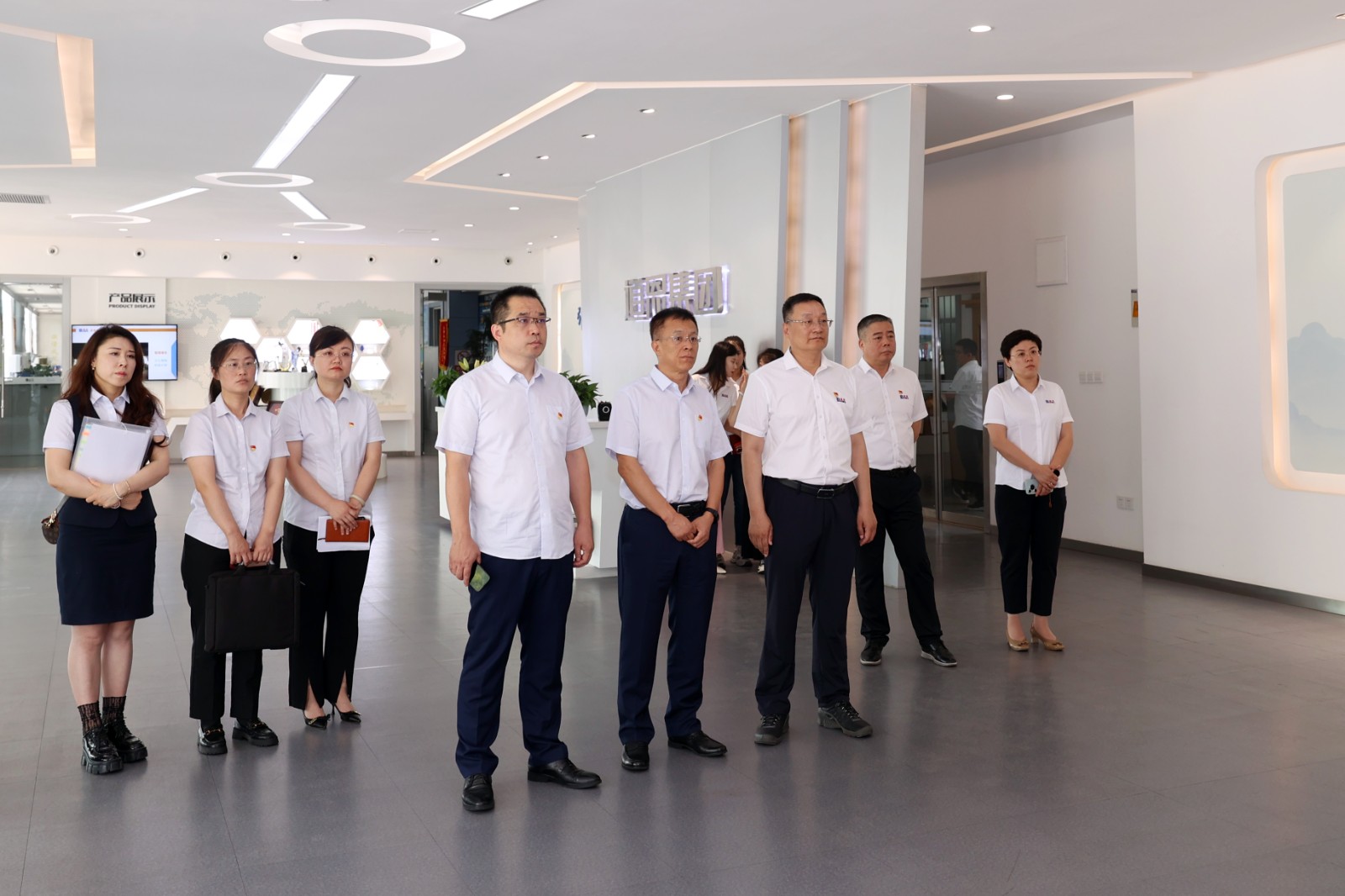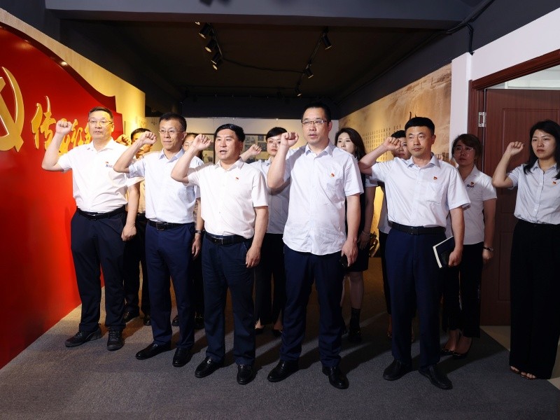肖應東書記一行實地參觀了道恩集團總部大廳、道恩傳承紅色基因教育基地,了解紅色文化在道恩的傳承與發展,從紅色藏品中觸摸崢嶸歲月,在紅色故事中汲取強大的信仰力量。在紅色文化墻前,于曉寧書記帶領大家重溫入黨誓詞,進一步堅定了初心使命。