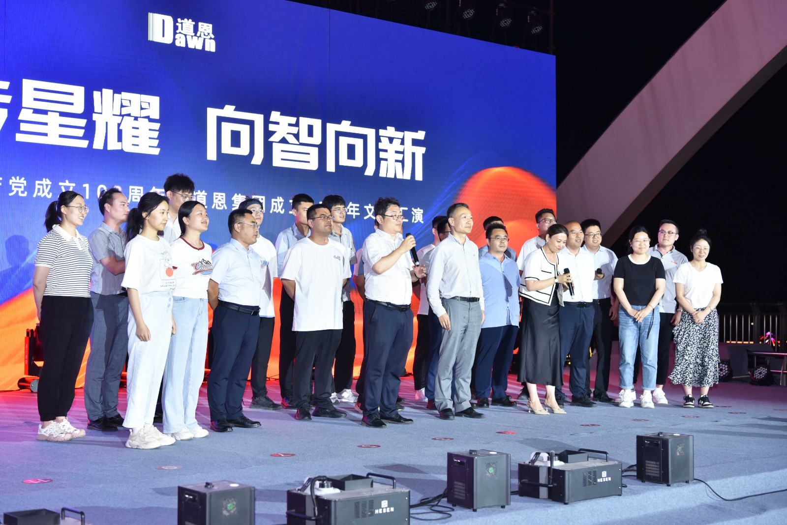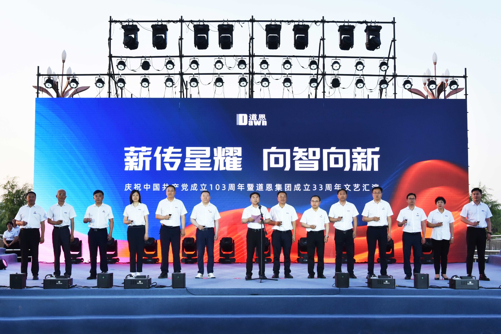6月28日,走進(jìn)龍口市道恩新材料科技產(chǎn)業(yè)園,彩旗招展,一派喜慶氛圍。當(dāng)天晚上,道恩人歡聚道恩橋,隆重舉行以“薪傳星耀 向智向新”為主題的慶祝中國(guó)共產(chǎn)黨成立103周年暨道恩集團(tuán)成立33周年文藝匯演。