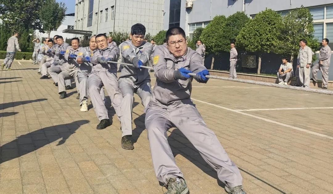 活動伊始,全體干部員工深情合唱《我和我的祖國》,以此為祖國獻禮?;顒又校涍^拔河、背靠背運球、跳袋接力、三磚過河、吹氣球五項比賽,參賽人員盡情揮灑汗水、釋放激情,展現了“團結拼搏,追求卓越”的道恩精神。