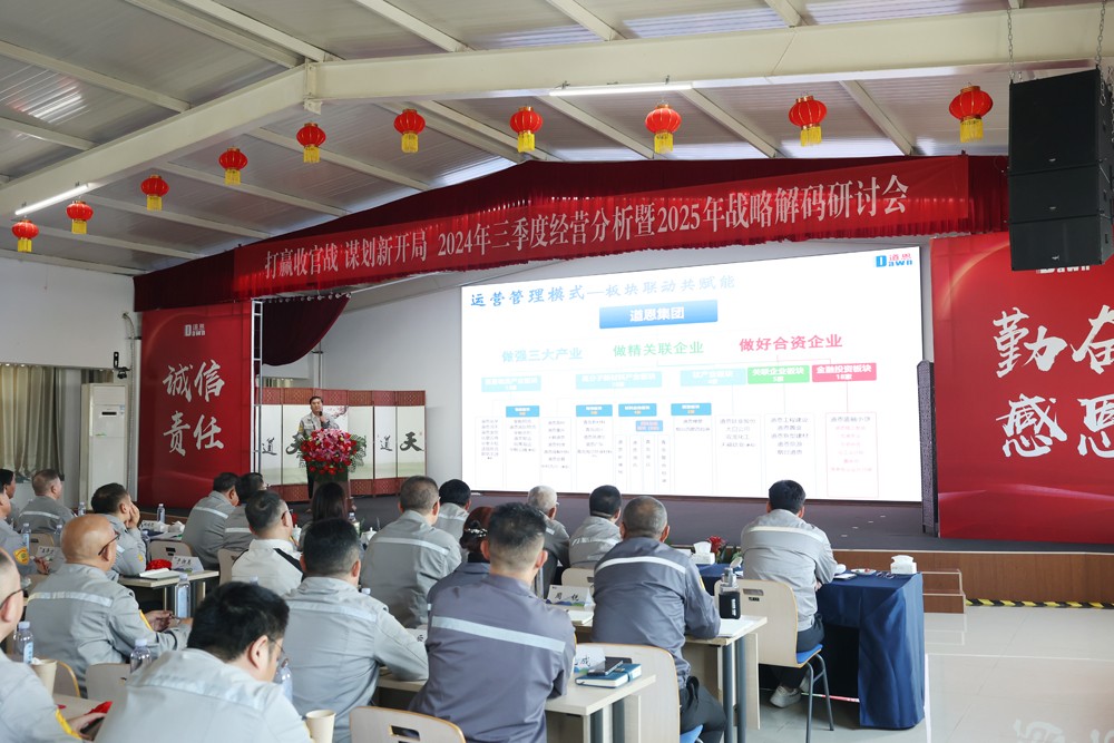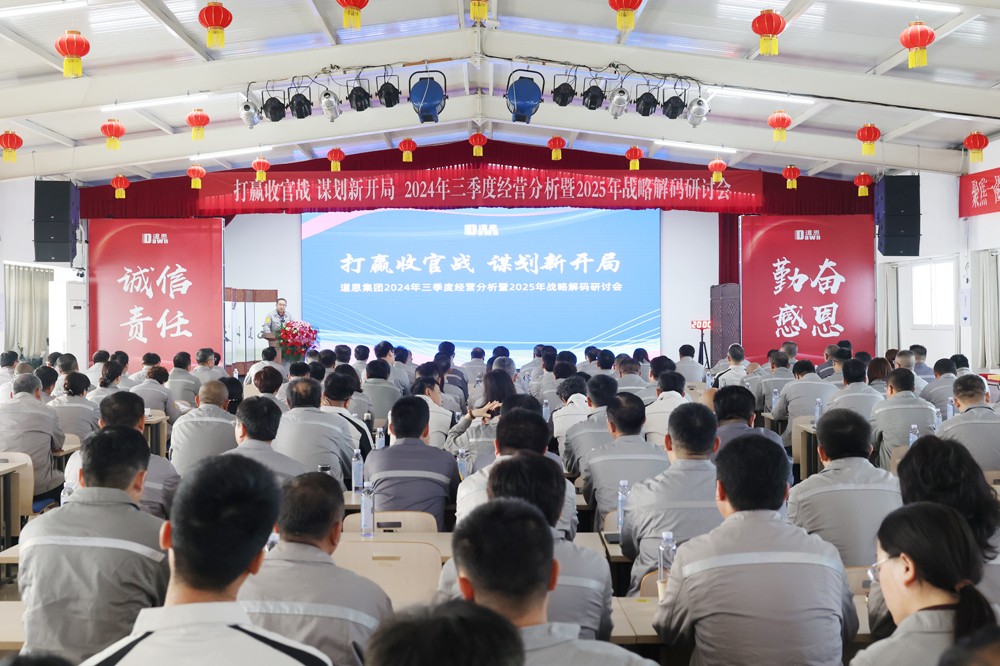有總結分析、有激情口號、有澎湃歌聲、有戰略解碼。11月2日召開的道恩集團三季度經營分析會暨2025年戰略解碼研討會,別開生面,正能量十足,激發全體干部員工“團結拼搏、追求卓越”,堅定了打贏收官戰的信心和決心,集思廣益,凝聚共識,研討新思路、謀劃新開局,以新發展理念引領新征程。