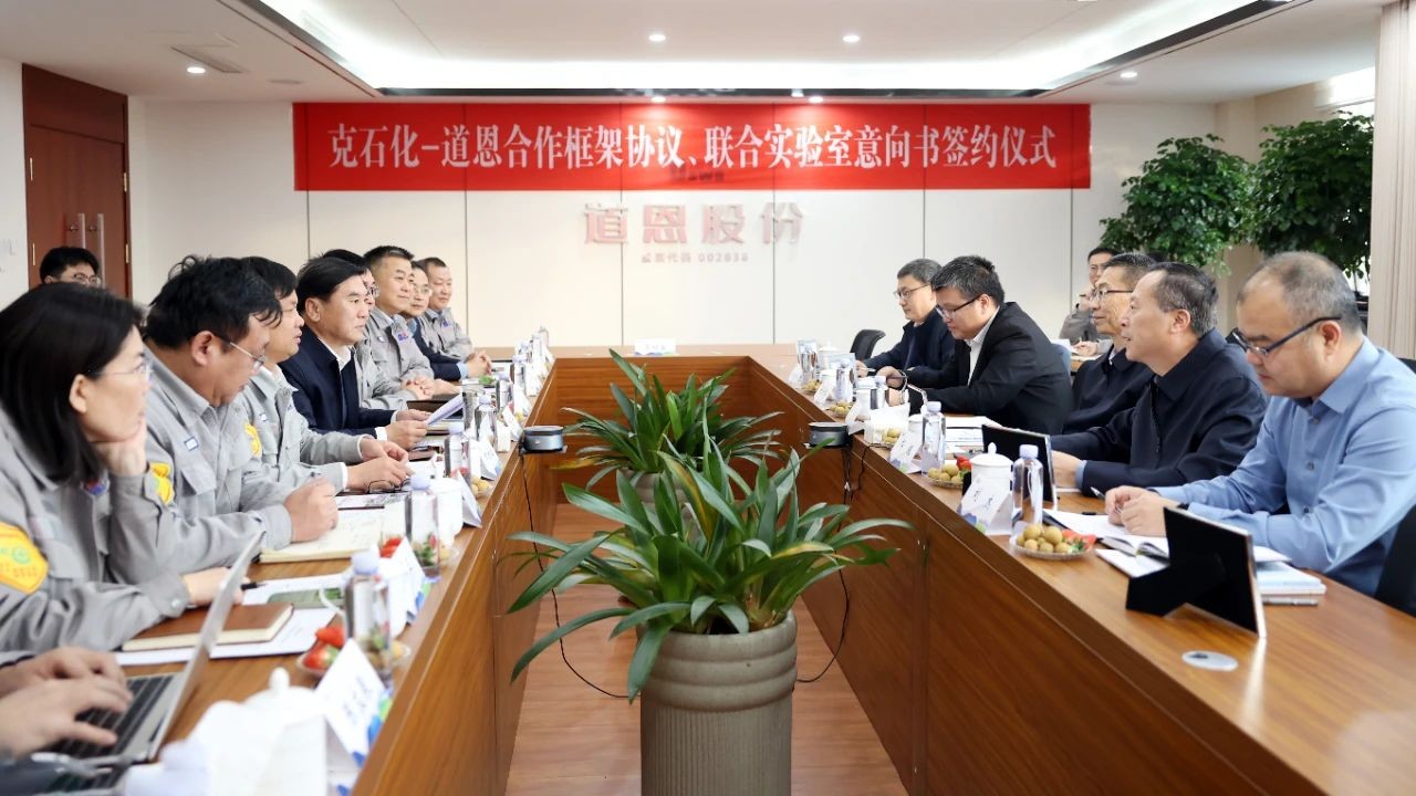 于曉寧董事長介紹了道恩集團發展歷程和科技創新情況,以及與大型石化公司開展技術合作取得的成果。“目前道恩多款產品處于行業前列,憑借頭部產品和企業地位,助推行業發展與進步,此時更需要攜手戰略性合作伙伴。”于曉寧董事長表示,克石化在技術研發、產品提升和用戶服務方面表現出色。“希望雙方資源共享、平臺共建、價值共創,提升產品的國際影響力和競爭力,為行業高質量發展貢獻力量。”