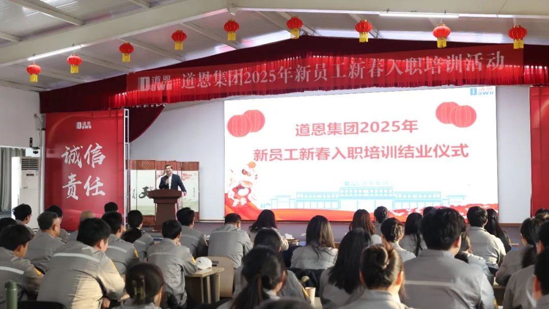 2月14日,為期5天的道恩集團2025年新員工新春入職培訓活動在道恩商學院圓滿落幕。道恩集團董事長、總裁,道恩商學院院長于曉寧出席結業儀式并講話。據介紹,今年的新春招聘工作自1月中旬啟動,經過層層選拔,百余人脫穎而出,順利入職。