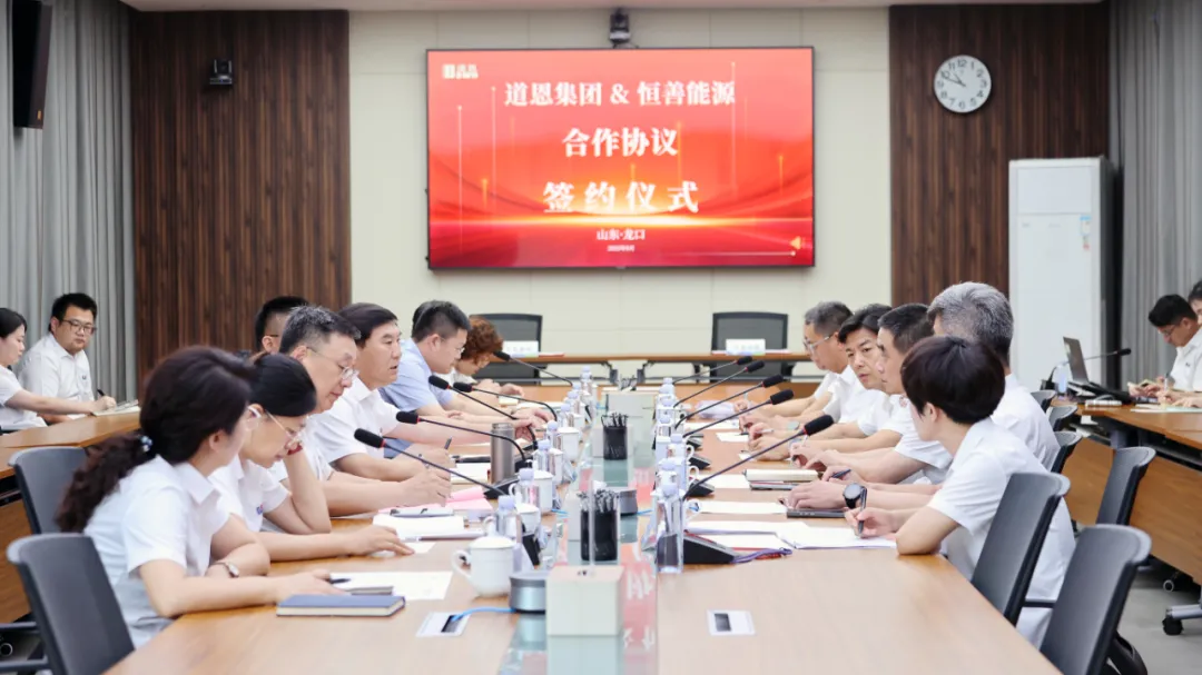 8月1日,是中國人民解放軍成立98周年紀念日。當天上午,道恩集團與煙臺恒善能源有限公司舉行合作簽約儀式,雙方攜手進軍全國船舶燃料油領域。龍口市委常委、辦公室主任蓋乾,龍口經濟開發區黨工委副書記、龍港街道黨工委書記殷志強,龍口市退役軍人事務局局長陳業坤,恒善能源總經理孫道善及其團隊,道恩集團董事長、總裁于曉寧,副總裁宋慧東、劉麗麗、解云濤及有關部門、單位負責人出席活動。