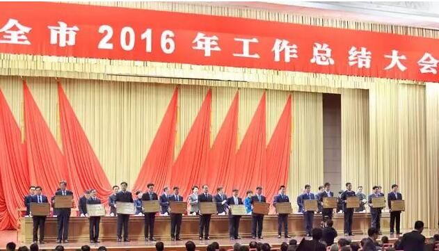 2月17日,在煙臺市2016年工作總結大會上,道恩集團被授予“經濟發展標兵企業”和“建功立業貢獻獎”榮譽稱號。此前,在龍口市和龍口經濟開發區召開的2016年度總結表彰大會上,道恩集團還獲得了8個先進集體榮譽稱號,4名道恩人獲得先進個人榮譽稱號。