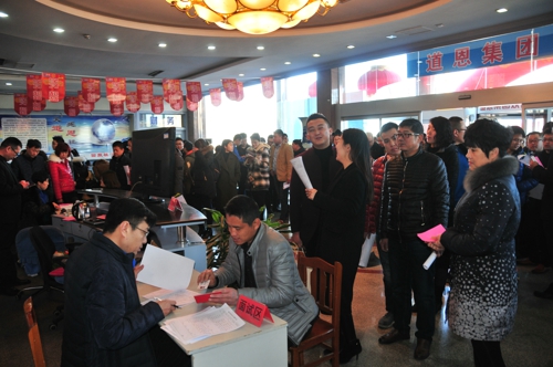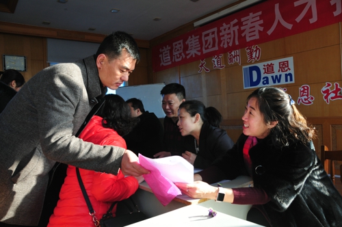 是日早上不到8點(diǎn),道恩集團(tuán)總部一樓大廳的招聘現(xiàn)場(chǎng)人潮涌動(dòng)。筆者看到,雖然現(xiàn)場(chǎng)人氣火爆但井然有序,從填寫檔案、綜合面試,各環(huán)節(jié)層層把關(guān),工作人員耐心地講解公司人才管理制度,應(yīng)聘人員積極展示自己的競爭優(yōu)勢(shì)。