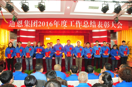 會議隆重表彰了2016年度做出突出貢獻的先進集體、先進個人,向他們頒發了榮譽證書和獎金。新員工代表、先進工作者代表、優秀班組長代表、優秀干部代表、先進單位代表、先進部門代表分別作了經驗交流和表態發言。