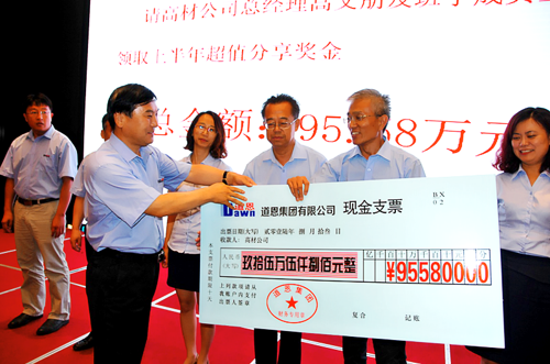 據了解,前不久集團公司下發了《2016年職能部門(經營單位)薪酬架構及發放試行辦法》,旨在適應新經濟常態下的競爭,以“超值分享獎”激發企業干部員工工作積極性和價值創造性,推動集團公司健康持續高效發展。讓廣大干部員工在“共舞、共建、共享”中實現自身價值,與道恩共成長。
