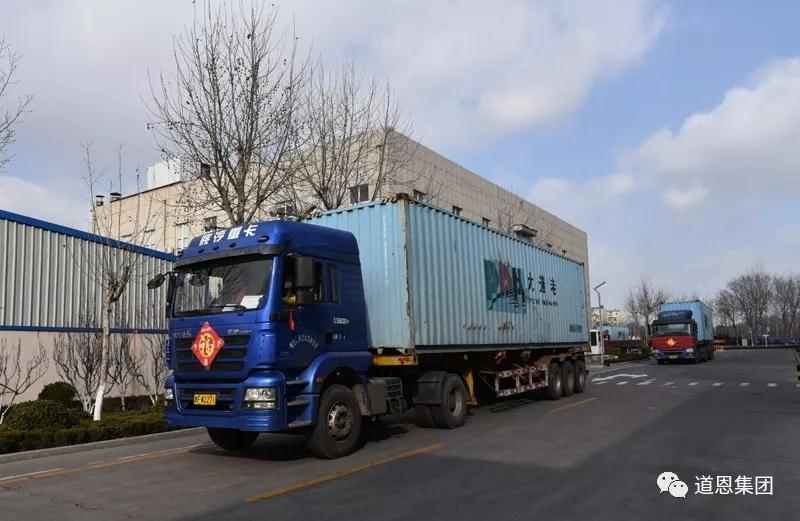 2月5日上午,三輛滿載聚丙烯原料的集裝箱貨車駛?cè)氲蓝鞴煞輳S區(qū),這標志著此次定制的1300噸聚丙烯原料,首批貨物順利抵達,以最大限度滿足口罩布聚丙烯熔噴專用料生產(chǎn)需求。