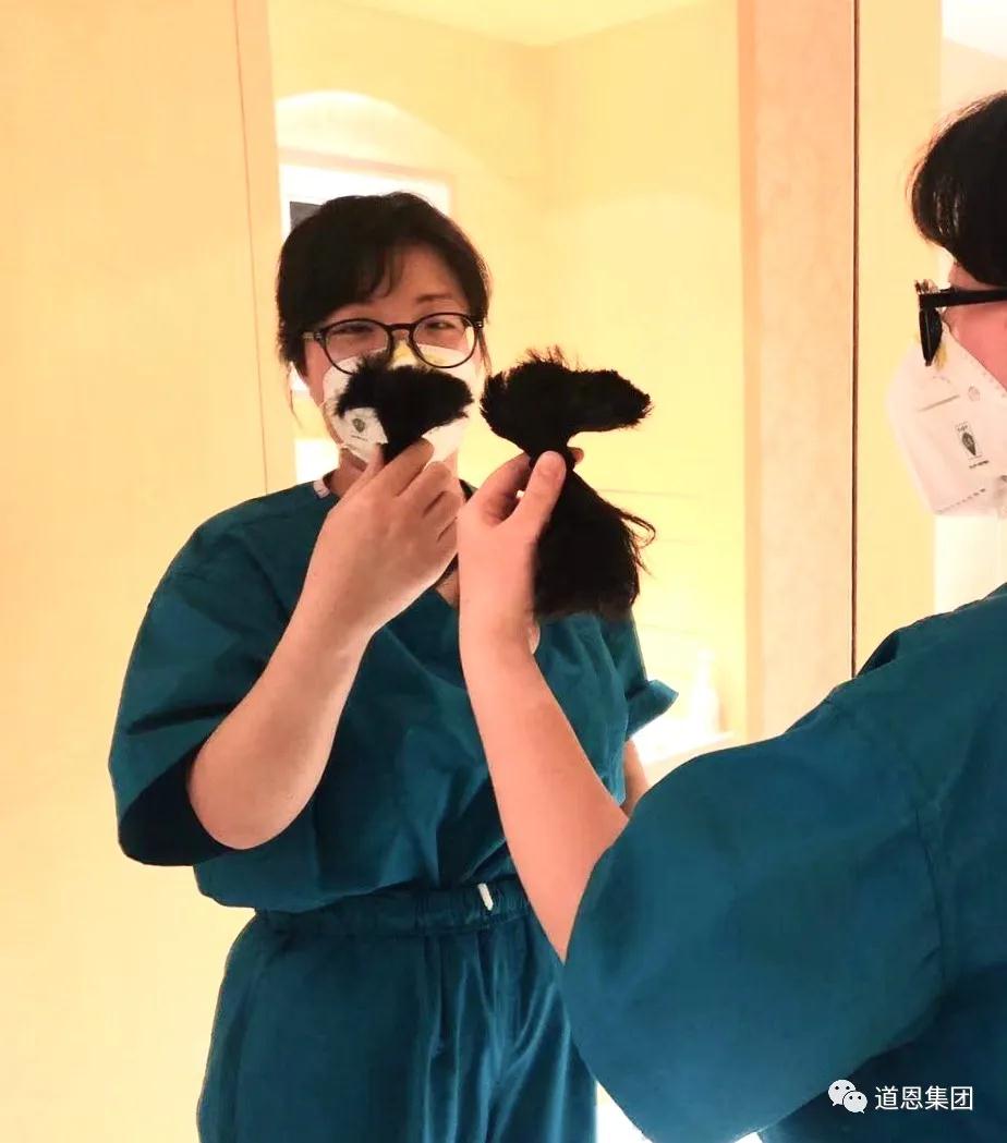 抵達(dá)武漢后,鄭俊博被分配到同濟(jì)醫(yī)院中法院區(qū)病房工作。這里的患者都是危重癥患者,病情變化快、感染風(fēng)險(xiǎn)高,為了杜絕感染風(fēng)險(xiǎn),她剪掉了一頭長發(fā),沒有一絲怨言。“我要加油,大寶還等著我打敗病毒回家,帶他們出去玩呢”。鄭俊博樸素的話語中,蘊(yùn)藏著無限的勇氣。