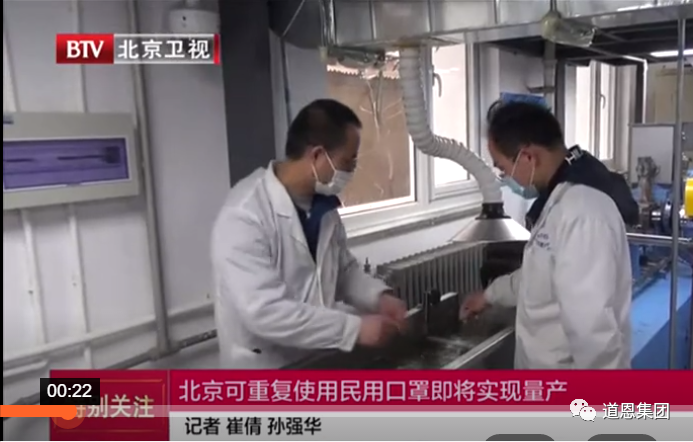 北京衛(wèi)視:可重復(fù)使用民用口罩即將實(shí)現(xiàn)量產(chǎn)(道恩—北化聯(lián)合實(shí)驗(yàn)室)