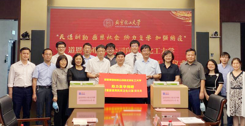612日下午,道恩集團向北京化工大學捐贈20萬只可重復使用民用衛(wèi)生口罩儀式在該校舉行,道恩集團董事長于曉寧、道恩(高材)北京科技有限公司研發(fā)中心主任韓吉斌、中國合成橡膠工業(yè)協(xié)會熱塑性彈性體分會有關負責人,北京化工大學黨委副書記宋來新,黨委常委、副校長張立群等領導和師生代表出席活動。