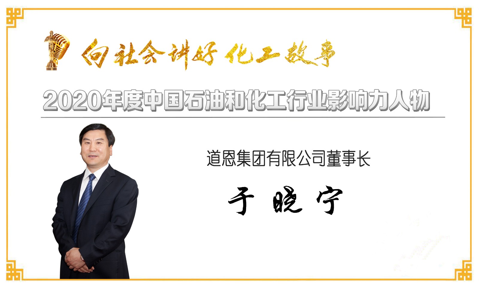 1月16日,2020年度中國(guó)石油和化工行業(yè)“十大新聞暨行業(yè)影響力人物”發(fā)布盛典舉行線上直播,道恩集團(tuán)董事長(zhǎng)于曉寧榮獲2020年中國(guó)石化行業(yè)影響力人物。