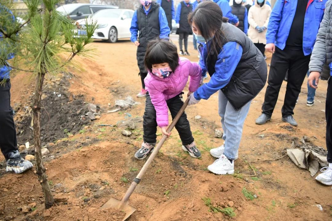 上午8時(shí)許,在位于龍口市新材料新能源產(chǎn)業(yè)園北皂路的植樹地點(diǎn),數(shù)百名干部員工積極投身植樹活動(dòng)。于曉寧董事長與大家一起拿起鐵锨、挖坑植苗,鏟土入坑、培實(shí)新土、修整樹盆,活動(dòng)現(xiàn)場一派熱火朝天的勞動(dòng)景象。可喜的是,植樹隊(duì)伍中出現(xiàn)了“小道恩人”,他們在大人的指導(dǎo)下拿起鏟子為樹苗培新土,從小培養(yǎng)環(huán)保意識和生態(tài)理念。