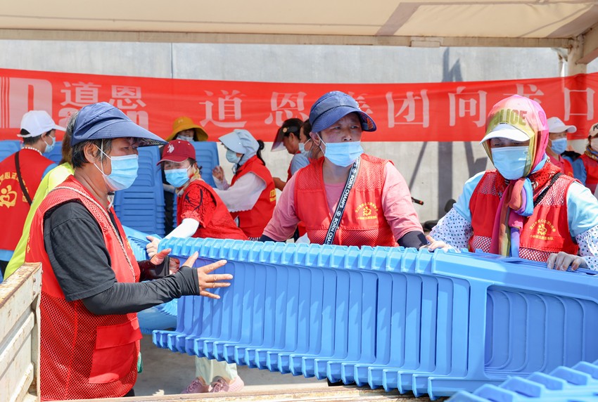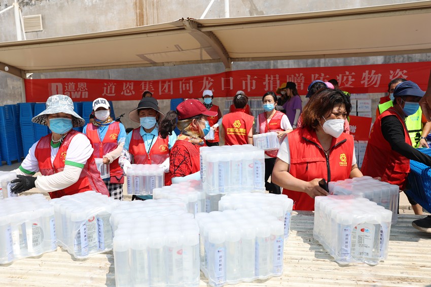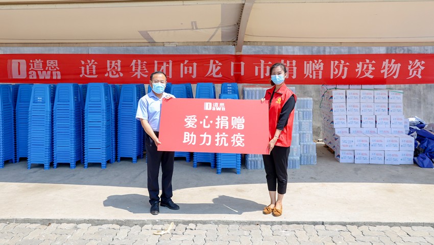 8月6日中午,道恩集團(tuán)常務(wù)副總裁肖輝將防疫物資捐獻(xiàn)給龍口市。“這次道恩捐贈的遮陽棚、塑料凳和礦泉水,都是防疫一線急需的物資。”前來負(fù)責(zé)接收和發(fā)放防疫物資的龍口市婦聯(lián)工作人員李幸說,“好人之城,好人同行。愛心企業(yè)的溫暖行動,更堅定了我們戰(zhàn)勝疫情的決心和信心。”