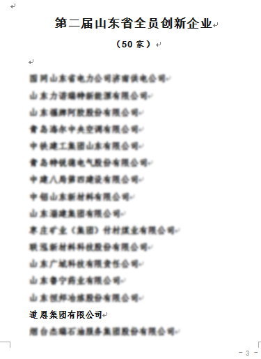 11月12日,山東省總工會公布第二屆山東省全員創新企業名單,道恩集團榜上有名,標志著企業全員創新工作成為全省樣板。據悉,全省僅有50家企業入圍該名單。