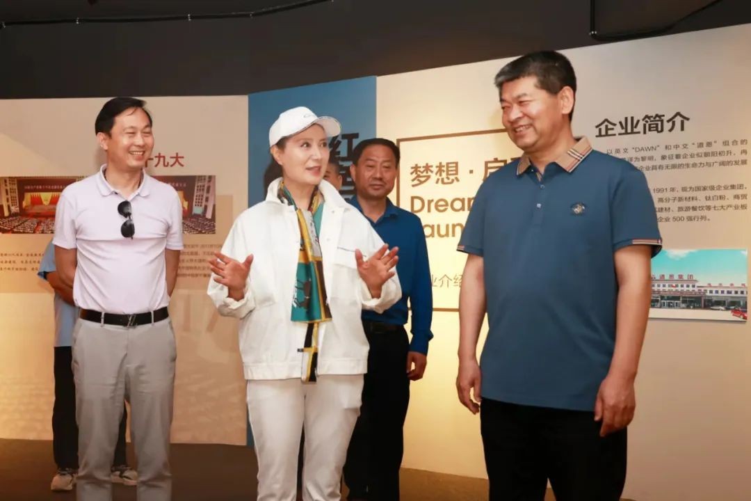 走進道恩集團傳承紅色基因教育基地,琳瑯滿目的文化藏品吸引了溫玉娟的關注,看著富有年代氣息的老照片、老物件,不禁回憶起自己的演藝生涯。在了解到于曉寧董事長的創業故事后,溫玉娟感慨萬千,她對家鄉民營企業家的膽識、魄力表示敬佩,對道恩人“團結拼搏、追求卓越”的精神大為贊賞,同時對道恩在紅色文化傳承中所作出努力表示肯定。