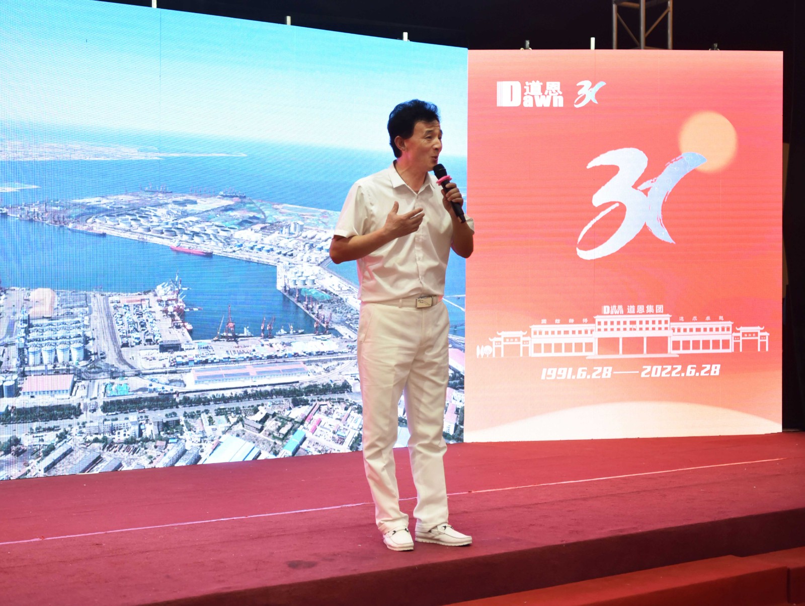 “三十一年間,道恩有太多的收獲和感慨,有太多的辛酸和喜悅,更重要的是有大家一路攜手同行!”于曉寧董事長攜道恩集團領導班子成員上臺致辭,深情回顧了道恩31年發展之路,圍繞企業文化、戰略目標、產業布局、園區建設等進行介紹,與大家共享道恩31年的高質量發展成果。