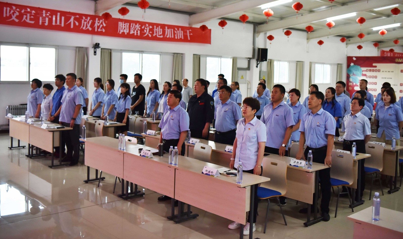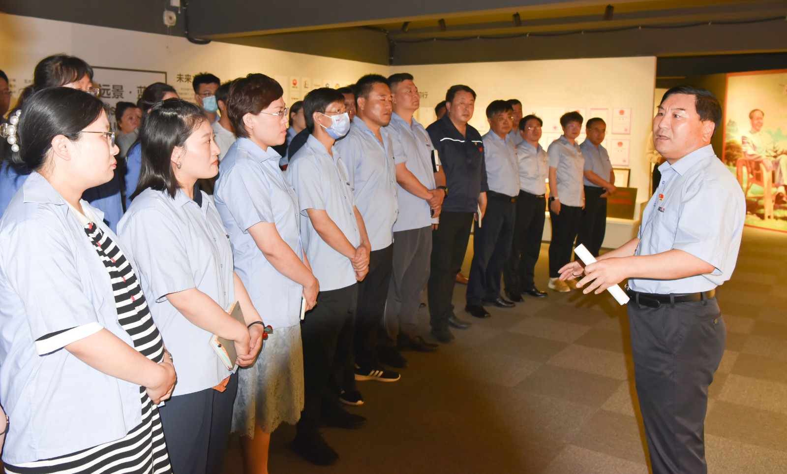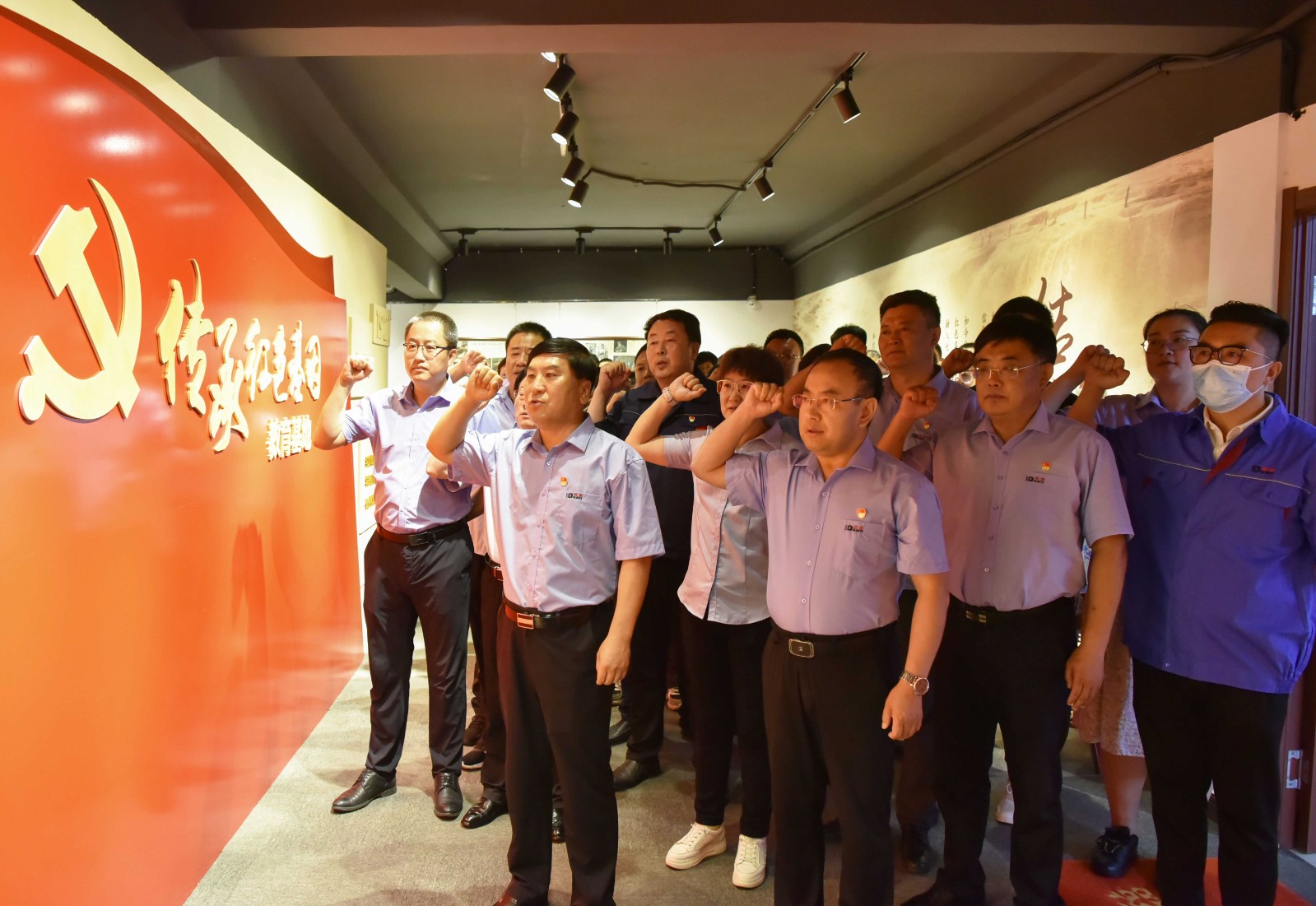 在黨委書記于曉寧的帶領下,與會人員參觀了傳承紅色基因教育基地,實地感受黨在發展歷程中沉淀下來的紅船精神、延安精神、工匠精神。“我志愿加入中國共產黨……”于曉寧書記與黨員干部高舉右拳,莊嚴宣誓,錚錚誓言,響徹全場。