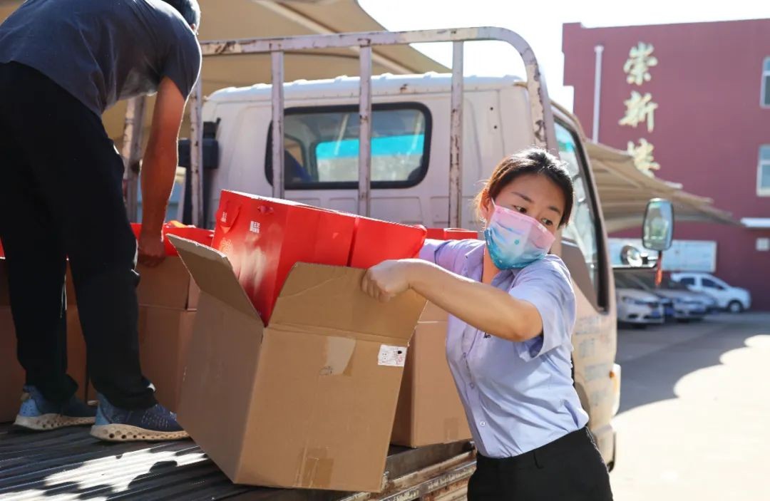 此前的9月5日,北京化工大學昌平校區發現新冠疫情。全校師生就地隔離,足不出戶,統一配餐到宿舍。“北化師生戰疫的消息牽動著每一位道恩人的心。”道恩集團董事長、總裁于曉寧表示,我們立刻想到捐贈煙臺蘋果,讓大家在“雙節”封控期間品嘗一下煙臺特產。為此,集團公司聞訊而動,自上而下成立行動小組,聯合有關職能部門和經營單位力量,第一時間緊急采購蘋果、設計生產包裝、連夜聯系物流、協調裝箱裝車等事宜。