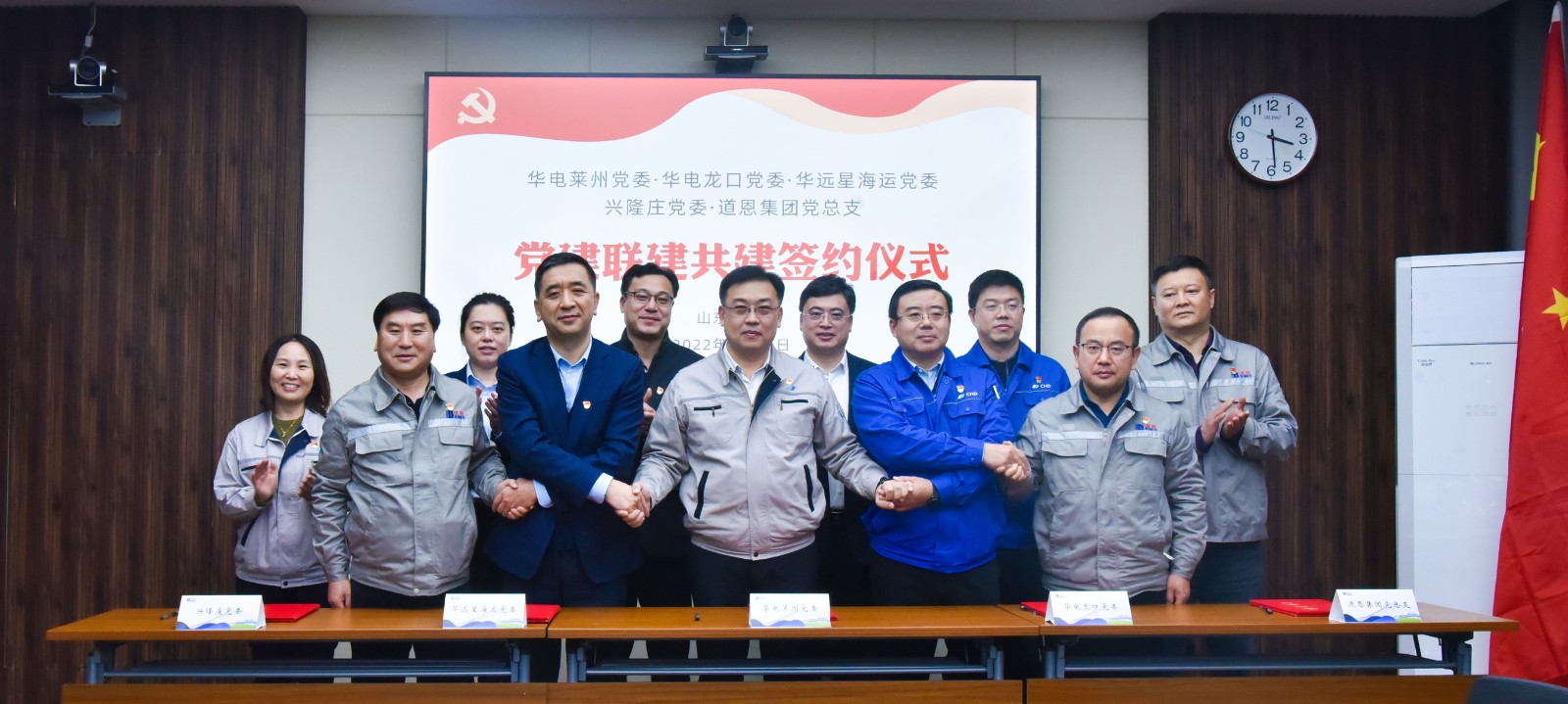 華電萊州發電有限公司、華電龍口發電有限公司、華遠星海運有限公司與龍口市龍港街道興隆莊、道恩集團黨組織開展黨建結對共建,旨在積極學習貫徹黨的二十大精神,交流黨建工作經驗,構建相互促進、共同提高的黨建格局。